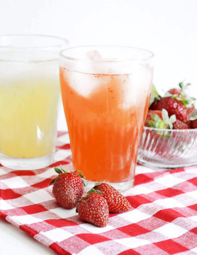 Suggestion#2  You can color your lemonade if you mash 2-3 strawberries with a fork through a sifter and add the pulp in the lemonade. If you want a more intense strawberry flavor, mash 1-1 1/2 cups of strawberries in a blender, pass them through a sifter and add the pulp to your lemonade.