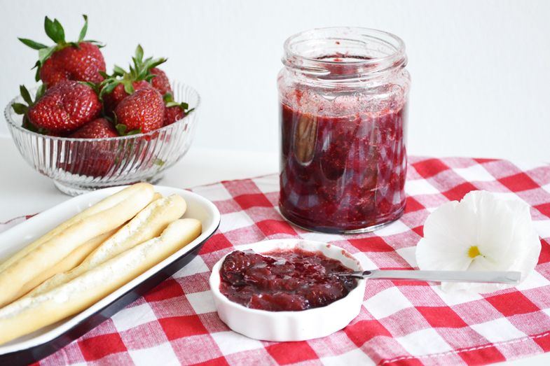 Really easy strawberry jam from the april issue of gastronomos magazine. You will need