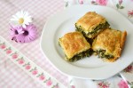 Place all the ingredients of the pastry in a large bowl and keep some extra flour in another one to flour your working surface and work your dough. Knead until you have a soft dough that doesn’t stick to your hands (you may need to use some of the extra flour). Let it rest in the fridge for half an hour. Then divide the dough in 12 balls. Using a rolling pin, roll out half of the balls into a circle measuring the size of a large shallow plate and place them in top of each other spreading some butter in-between. Do the same thing for the other half and place them in the fridge for an hour (or in the freezer for half an hour) to cool the butter.