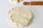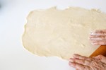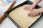 Τοποθετήστε όλα τα υλικά για την παρασκευή της ζύμης σε ένα μεγάλο μπολ και σε ένα δεύτερο κρατήστε λίγο επιπλέον αλεύρι για να δουλέψετε τη ζύμη σας και για να αλευρώσετε την επιφάνεια εργασίας σας. Ζυμώστε τα υλικά μέχρι να έχετε μια αφράτη ζύμη που δεν κολλάει (αν χρειαστεί χρησιμοποιήστε και λίγο από το επιπλέον αλεύρι). Αφήστε τη ζύμη να ξεκουραστεί για μισή ώρα. Στη συνέχεια χωρίστε τη ζύμη σε 12 ίσα κομμάτια, το μέγεθός τους είναι περίπου σαν μπαλίτσες του τένις. Πάρτε ένα μεγάλο ρηχό πιάτο, ανοίξτε μια μια τις μισές μπαλίτσες ζύμης στο μέγεθος του πιάτου περίπου και τοποθετήστε τις τη μια πάνω στη άλλη βουτυρώνοντας ενδιάμεσα. Κάντε το ίδιο και για τις υπόλοιπες μισές και βάλτε τα δύο πιάτα στο ψυγείο για μια ώρα (ή για μισή ώρα στην κατάψυξη) για να παγώσει το βούτυρο.