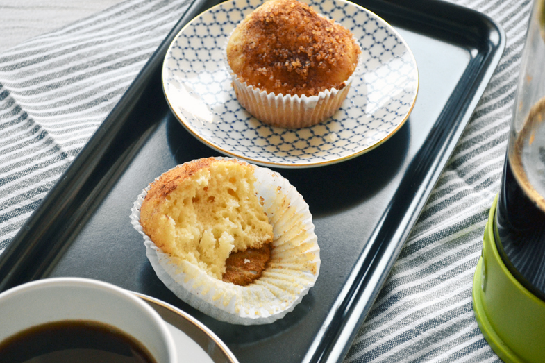 In a small bowl, mix together the brown sugar and cinnamon. While the muffins are still hot, brush with the butter and dust with the brown sugar and cinnamon mix. I usually use a teaspoon to dust them. Try using your fingers, the result will probably be better than shown in my photos. Next time I will try that too. 🙂