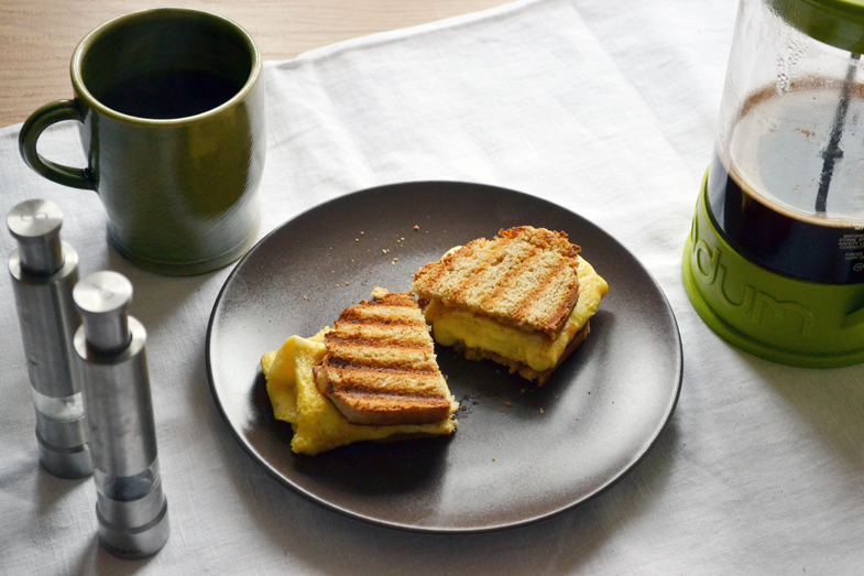 Αυτό το πρωινό το είδα κάπου στο internet εδώ, μου άρεσε η ιδέα του λιωμένου τυριού μέσα στο αυγό και όλο αυτό ανάμεσα σε δύο φέτες φρυγανισμένου ψωμιού, αλλά δυστυχώς δε σημείωσα την ιστοσελίδα ή το blog στο οποίο το εντόπισα. Αν το πετύχω ξανά, θα επανέλθω να το αναφέρω. Για αυτό το σάντουιτς θα χρειαστείτε