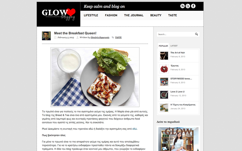 Σε αυτό το link μπορείτε να διαβάσετε την πρώτη μου μικρή συνέντευξη στον Δημήτρη Κοπαράνη για λογαριασμό του περιοδικού Glow. Θα βρείτε, επίσης, και τη συνταγή μου για τα popovers, που είχα ανεβάσει πέρυσι και σας είχε αρέσει πολύ. Αυτή τη φορά, όμως, ετοίμασα για το Glow.gr καινούριες πιο λαχταριστές φωτογραφίες! Ευχαριστώ πολύ τον Δημήτρη για τα ωραία λόγια και τον τιμητικό του τίτλο!