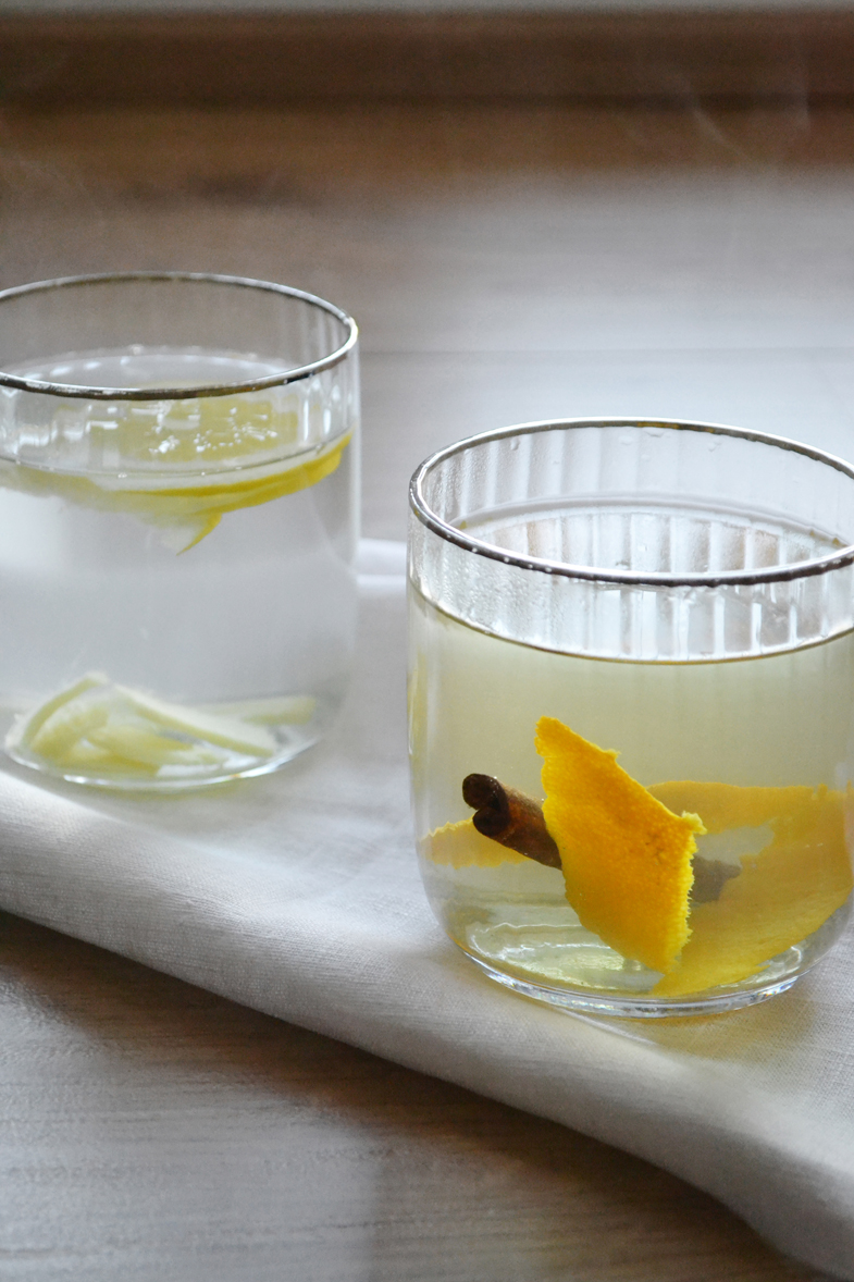 This is not exactly breakfast. It is my drink before breakfast, antioxidant, stimulant, hydrating, full of flavor, vitamins and other beneficial nutrients, depending on the ingredients. You can have it ideally in the morning on an empty stomach to get all these benefits. Choose your favorite combination, spicy and sour with the ginger and lemon, sweet and aromatic with the cinnamon and orange. Boil some water. Use a bottle or a pitcher with a lid and pour the water in. Add the ginger, some lemon juice and lemon slices or cinnamon sticks and orange slices, put the lid on and let it sit for at least 15 minutes. The longer you leave it, the stronger the taste. Of course, you can drink these infused waters through out the whole day. It is a tasty way of drinking more water, if you are one of those people who tend to forget it.