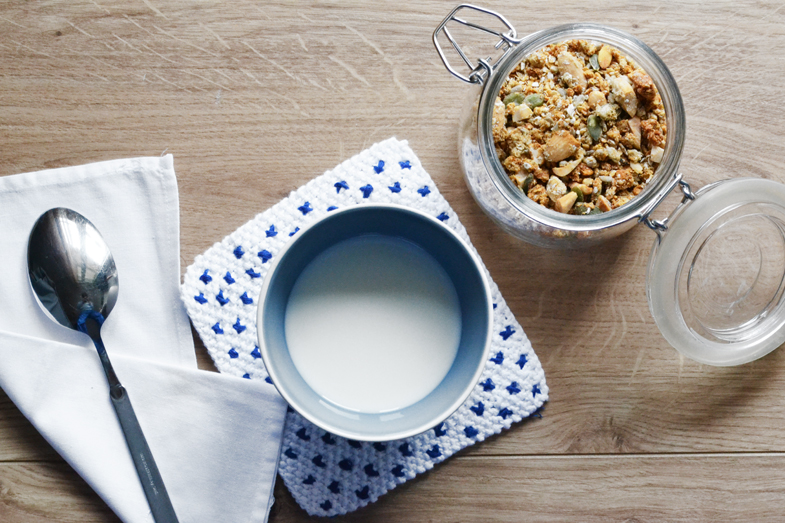This is my last favorite combination of nuts in my granola. I usually prefer it with milk, as shown in the pictures above, but you can also have it with yogurt. The ingredients are:
