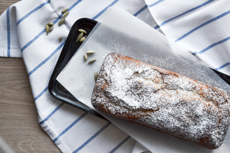 Olive oil cakes are my favorite! They don’t require beating with a mixer, they are really quick to make, they keep their moisture for much longer and of course, they are healthier. This cake has a very special scent because of the cardamon and the combination with the orange gives an incredibly tasty result. The recipe is slightly adapted from here and the ingredients are