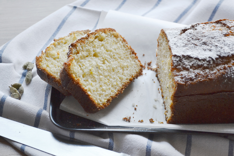 Preheat oven to 180°. Butter a standard loaf pan very well and dust with flour. Whisk together the flour, baking powder, cardamom, and salt in a medium bowl. In another bowl rub the orange zest and the sugars with your fingers. Combine it with the yogurt, olive oil and eggs.  Whisk until well blended. Fold in the dry ingredients just until combined. Pour the batter into prepared pan and bake in the center of the oven for 45–50 minutes until the cake is golden brown and a tester poked into the center comes out clean. Let the cake cool in pan for a while before unmolding it.