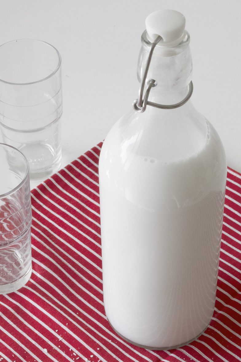 After almond milk, I thought I should try homemade coconut milk from shredded coconut, which is an ingredient I use really often and there is always a large quantity in my cupboard. It is one of those things I could never imagine how easy it is to make. Its nutritional value is really high. It is rich in vitamins, minerals and other nutrients and supports metabolism by aiding in energy consumption. It is also high in calories and fat, so you should consume it in moderation.