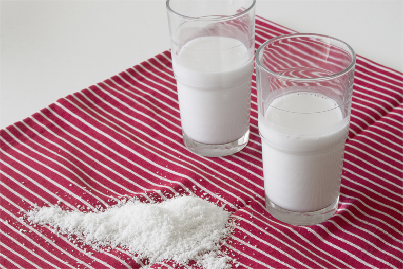 Μετά το γάλα αμυγδάλου είπα να δοκιμάσω και το γάλα καρύδας, μιας και ινδοκάρυδο χρησιμοποιώ συχνά και υπάρχει στο ντουλάπι σε αρκετή ποσότητα. Το γάλα καρύδας είναι και αυτό ένα από τα πράγματα που δε μπορούσα να φανταστώ ότι φτιάχνεται με τόσο εύκολο τρόπο. Σε αντίθεση με το γάλα αμυγδάλου, που δεν έχει έντονη γεύση και χρειάζεται κάτι να το αρωματίσει, αυτό το γάλα έχει τη γλυκιά γεύση και το άρωμα της ινδικής καρύδας. Όσον αφορά στη διατροφική του αξία, έχει βιταμίνες, μέταλλα και άλλα θρεπτικά συστατικά και ενώ έχει αρκετά λιπαρά, βοηθά το μεταβολισμό και δίνει άμεσα ενέργεια. Οι θερμίδες του είναι πολλές, οπότε θέλει προσοχή στην κατανάλωση.