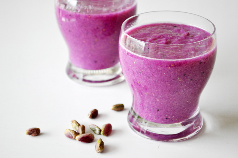 Έχω βαλθεί να δοκιμάσω ότι λαχανικό μπορεί να μπαίνει μέσα σε smoothie και ανακαλύπτω ότι είναι πολλά! Το κόκκινο λάχανο είναι σίγουρα ένα από αυτά. Είναι πολύ καλή πηγή βιταμίνης C, έχει ασβέστιο, κάλιο, νάτριο και φώσφορο και έχει αντιοξειδωτικές και αποτοξινωτικές ιδιότητες. Προσθέστε μια χούφτα κομμένο λάχανο στους χυμούς σας για να έχετε όλα τα οφέλη του, αλλά και αυτό το πλούσιο χρώμα! Τα υλικά για αυτό το smoothie είναι