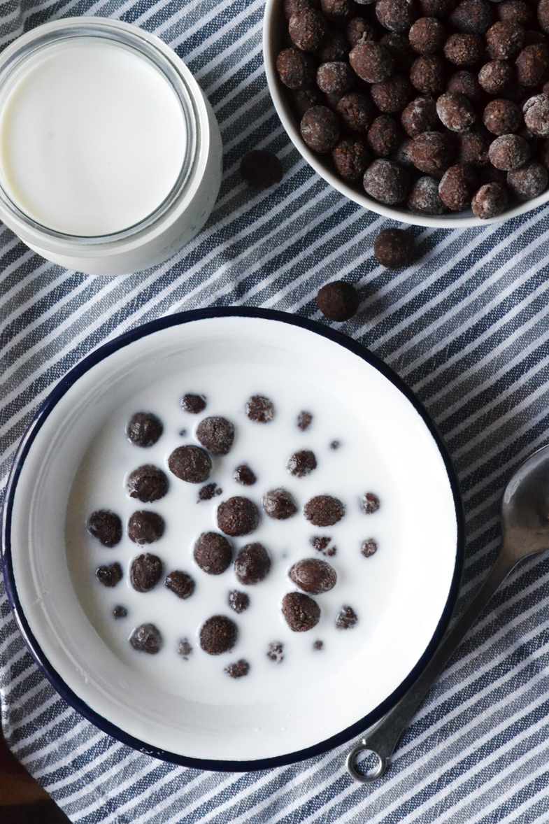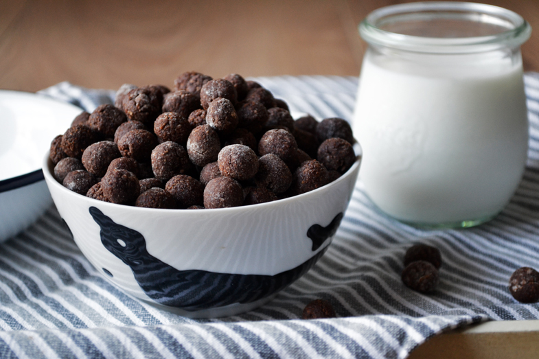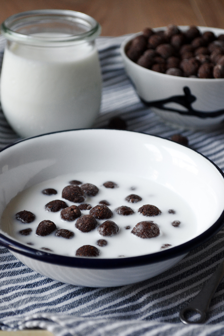 Σήμερα έχω συνταγή για σοκολατένια δημητριακά που μπορείτε να φτιάξετε σπίτι! Μην περιμένετε να είναι σαν του εμπορίου. Διατροφικά είναι σαφώς πολύ καλύτερα, έχουν βρώμη, αμύγδαλο, κακάο, μέλι, υλικά που μπορείτε να διαλέξετε και να ελέγξετε την ποιότητά τους. Όσον αφορά την υφή τους, είναι σα μικρές τραγανές μπουκίτσες σοκολατένιου κέικ μέσα στο γάλα σας. Η αρχική συνταγή έρχεται από εδώ, αλλά την έχω τροποποιήσει αρκετά. Τα υλικά είναι