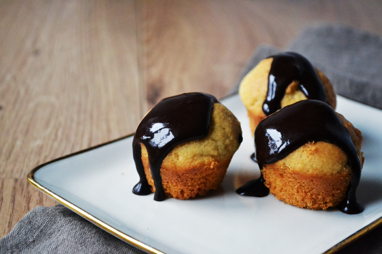Νutmeg mini muffins with chocolate glaze