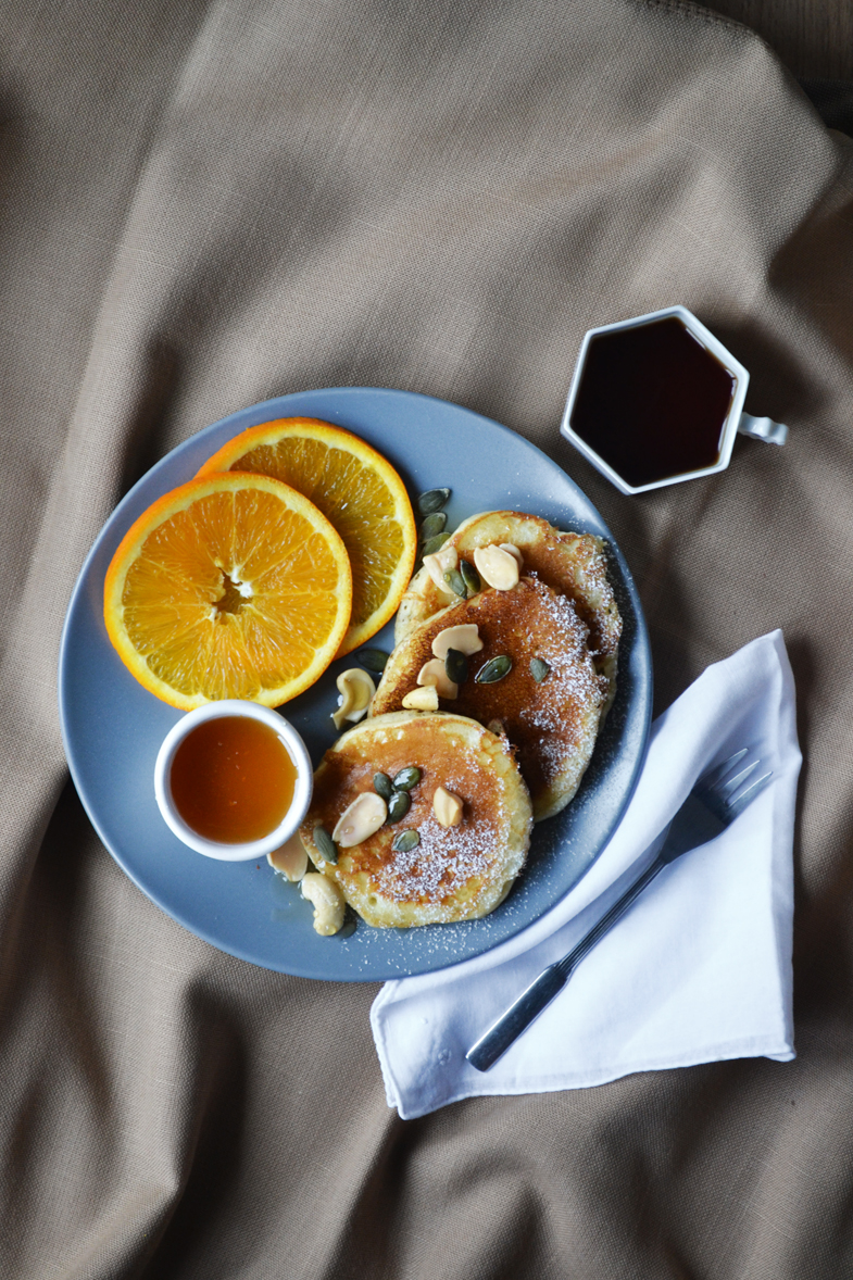 Ήταν το πρωινό του σαββατοκύριακου, αφράτα ζεστά pancakes αρωματισμένα με κάρδαμο. Για να τα συνοδέψω ετοίμασα ένα εύκολο σιρόπι από μέλι και χυμό πορτοκαλιού και τα σέρβιρα με ξηρούς καρπούς, φέτες πορτοκαλιού και ζεστό καφέ. Το πολύ καλό με αυτή τη συνταγή (έρχεται από εδώ) είναι ότι ο χυλός δεν είναι πολύ γλυκός, οπότε μπορείτε να τα σερβίρετε γλυκά, όπως εδώ, ή και αλμυρά με κάποιο κίτρινο τυρί και αλλαντικό, για να καλύψετε όλες τις γευστικές προτιμήσεις. Βγαίνουν περίπου 18 pancakes και τα υλικά είναι