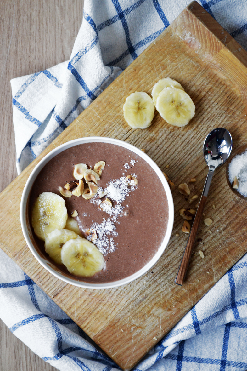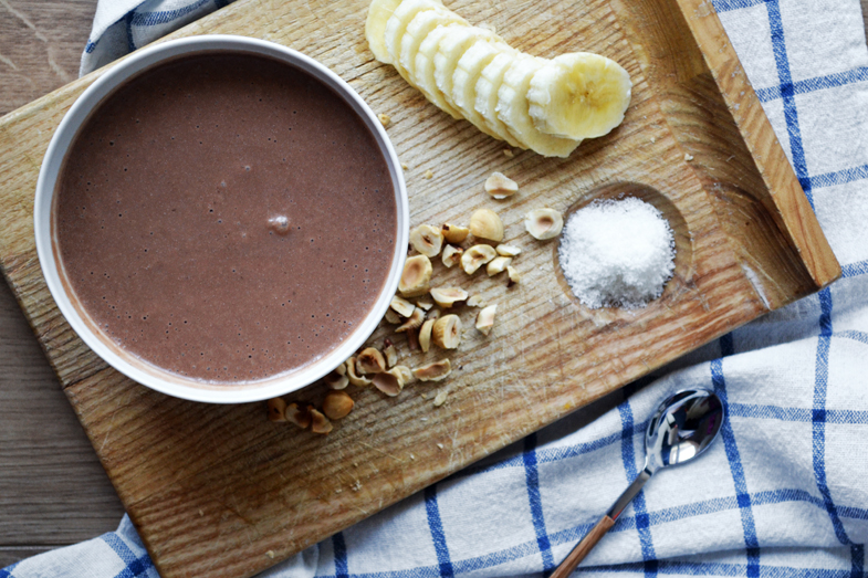 There is not much time lately for numerous reasons, especially in the mornings. And when there is not enough time to prepare breakfast, smoothies are the way to go. Now, if your smoothie is chocolate-y with hazelnut and coconut flavor, it definitely becomes your favorite breakfast, when you least expect it! For one choco-smoothie you will need