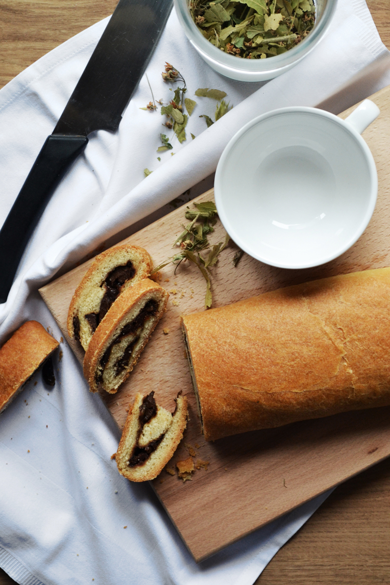 Use a non stick frying pan, coat lightly with olive oil and cook the onion for a few minutes. Add the mint leaves, mix and remove from fire. Add the olives and mix well. For the dough use a large bowl and mix flour and baking powder. Add the orange juice and vegetable oil and mix until you have an elastic dough that doesn’t stick. Divide the dough in three equal parts, take one and make a 30cm long rectangular sheet. Spread 1/3 of the filling on all of the surface and roll into a log sealing the ends. Transfer to a prepared baking pan with parchment paper seam side down. Prepare other two logs and bake in a preheated oven at 180 degrees for 30-40 minutes until golden. Store in an airtight container or in the fridge.