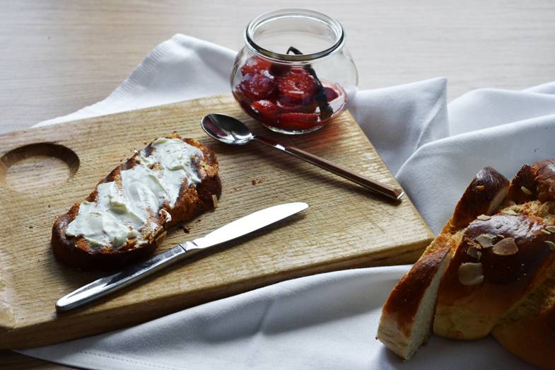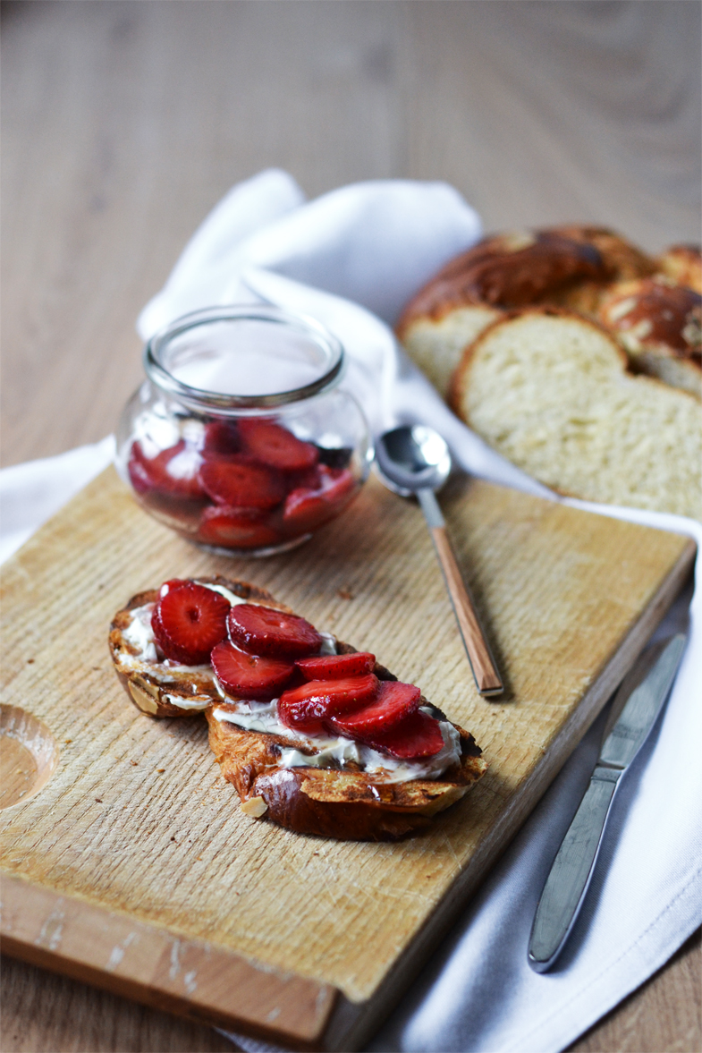 Toasted tsoureki with marinated strawberries