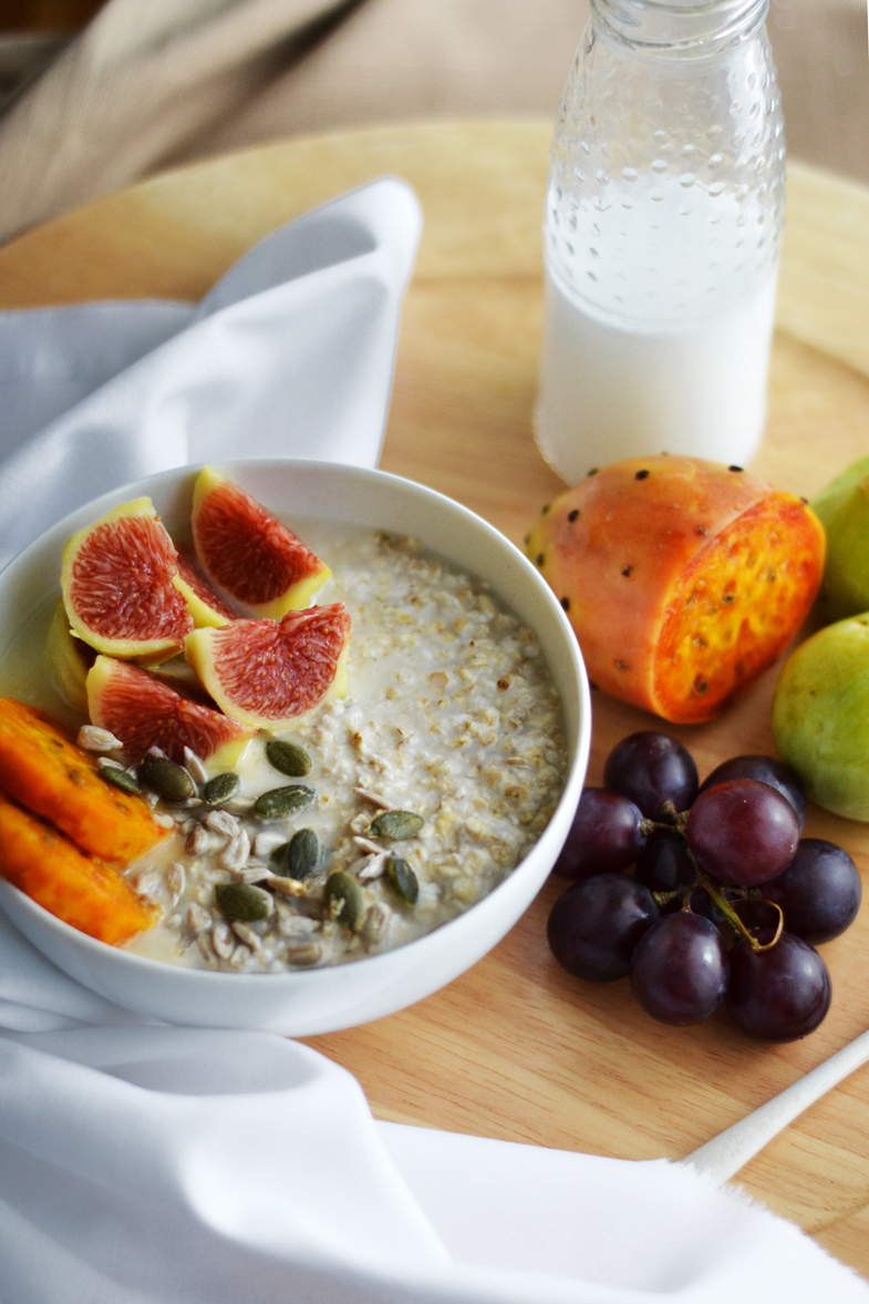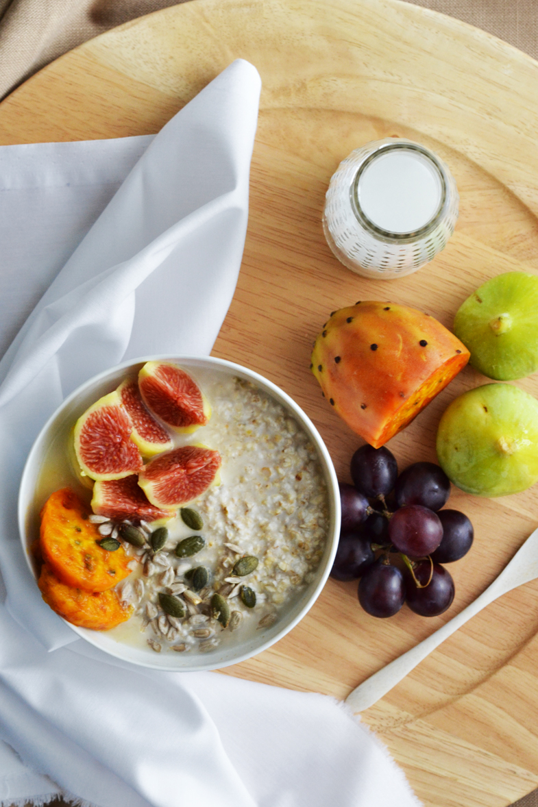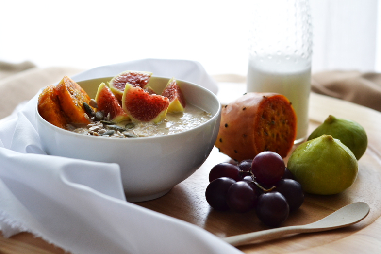 Μια μικρή σακούλα φραγκόσυκα που έφτασε στα χέρια μου ήταν η αφορμή να δοκιμάσω αυτό το πρωινό. Το bircher muesli ήταν ο μόνος τρόπος που σκέφτηκα να τα αξιοποιήσω εκτός από το να τα φάω σκέτα με το κουταλάκι. Δεν τα είχα ξαναδοκιμάσει ποτέ, στην πραγματικότητα ούτε που είχα ξαναπεριεργαστεί αυτά τα ιδιαίτερα φρούτα με την ήπια γλυκιά γεύση. Δοκιμάστε αυτό το πρωινό με ότι φρούτα έχετε σπίτι. Θα χρειαστείτε