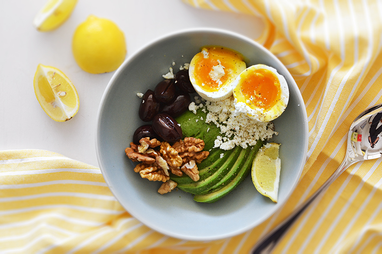 Ένα απλό μπολ με αβοκάντο και αυγό, αλλά και με ένα συνδυασμό υλικών που δεν είχα ξαναδοκιμάσει και είναι απλά φοβερός! Κόψτε το αβοκάντο σε φέτες, αλατοπιπερώστε και ρίξτε λίγο χυμό λεμονιού. Προσθέστε τα καρύδια, τις ελιές, την τριμμένη φέτα και το αυγό σας. Είναι ένα πρωινό γεμάτο πρωτείνη και καλά λιπαρά, χορταστικό που ούτε ψωμί δε χρειάζεται, αν και με αυτό τον κρόκο μια φρυγανισμένη φέτα ψωμιού είναι ότι πρέπει! Για το μελάτο αυγό ζεστάνετε νερό σε ένα κατσαρολάκι και μόλις φτάσει στο σημείο έντονου βρασμού προσθέστε το αυγό με ένα κουτάλι (σε θερμοκρασία δωματίου για να μη σπάσει) και βάλτε το χρονόμετρο στα 6 ή 6μιση λεπτά ανάλογα με το μέγεθος του αυγού.
