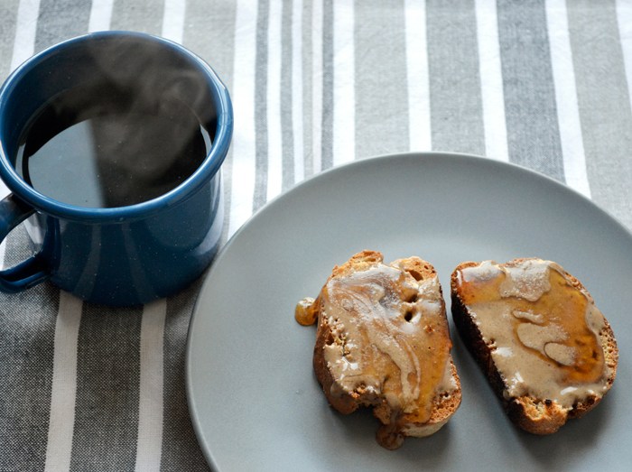 Toasted bread with tahini and honey