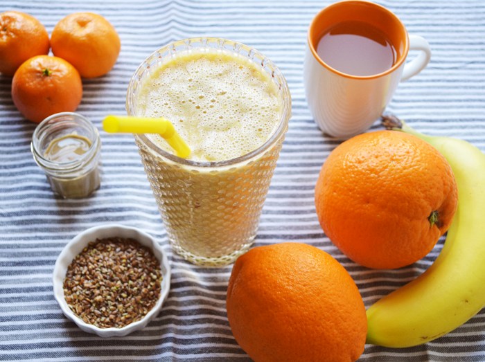 mixer φρούτων με ταχίνι και λιναρόσπορο