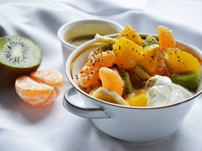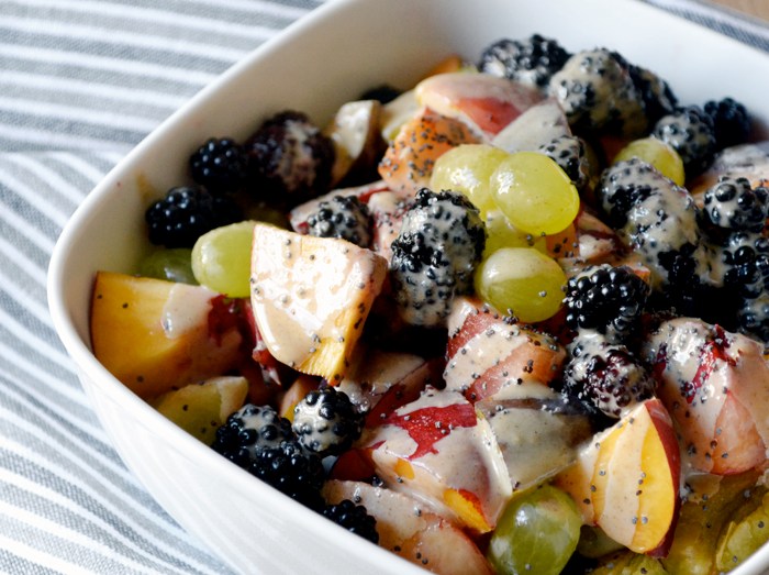 καλοκαιρινή φρουτοσαλάτα με σως ταχινιού