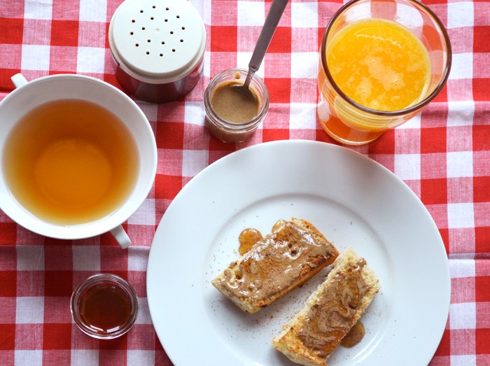 φρυγανισμένο ψωμί με ταχίνι, μέλι και κανέλα