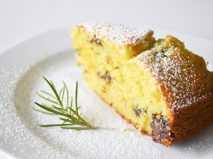 κέικ ελαιόλαδου με σοκολάτα και δενδρολίβανο
