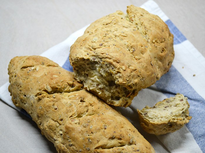 Αυτή η συνταγή είναι ουσιαστικά μια παραλλαγή εκείνης που έχω ανεβάσει εδώ, μόνο που έχω αφαιρέσει τελείως το άσπρο αλεύρι, έχω διπλασιάσει την ποσότητα του αλευριού ολικής και έχω προσθέσει τους διάφορους σπόρους. Τα υλικά είναι τα εξής 200 γρ σκληρό κίτρινο αλεύρι 400 γρ αλεύρι ολικής […]