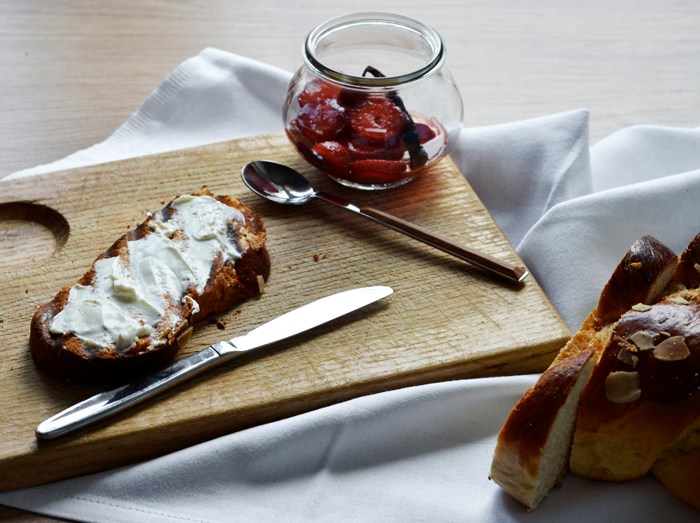 φρυγανισμένο τσουρέκι με μαριναρισμένες φράουλες