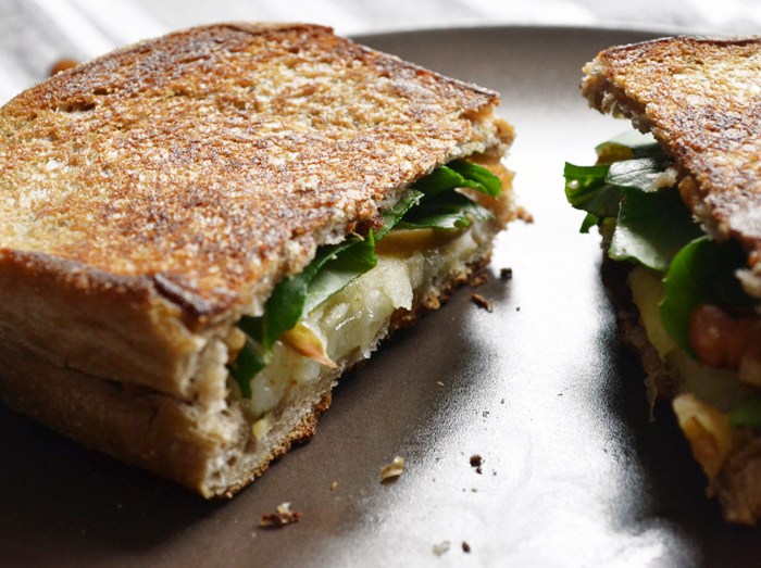 σάντουιτς με γραβιέρα, μήλο και σταφίδες