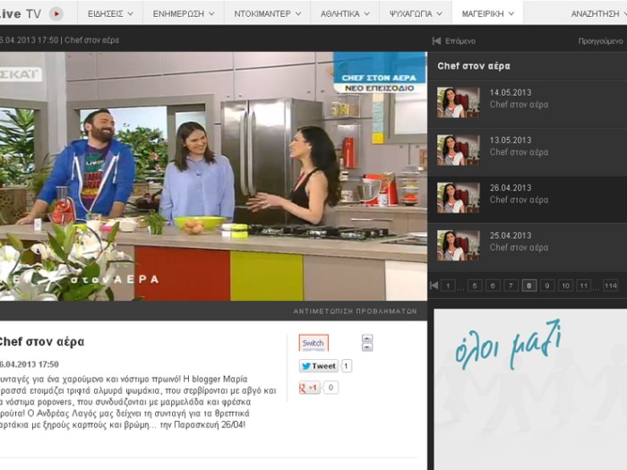 Το ξέρω ότι είναι παραμονή Δεκαπενταύγουστου και εύχομαι οι περισσότεροι από εσάς να είναι σε διακοπές! Ενημερώνω, όμως, όσους είναι στο σπίτι και έχουν ανοιχτή την τηλεόρασή τους ότι την Παρασκευή 16 Αυγούστου στις 17:50 θα προβληθεί σε επανάληψη στην τηλεόραση του ΣΚΑΪ η εκπομπή Chef στον Αέρα […]